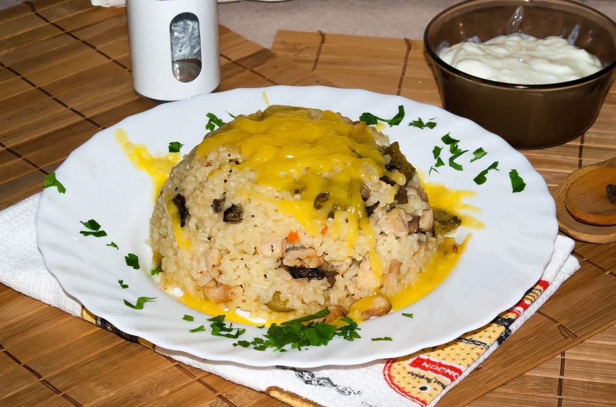 ориз,пил.месо,шунка,гъби,кашкавал ,кисело мляко-400гр